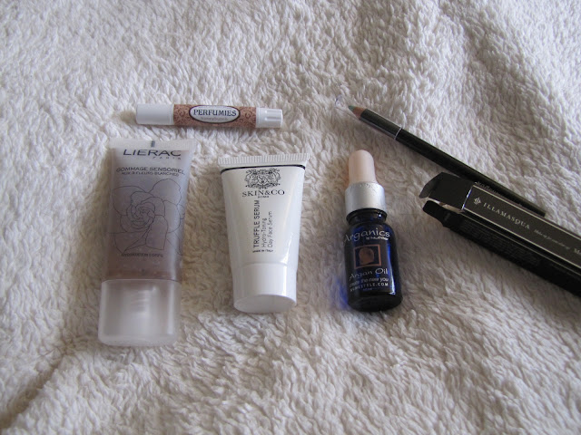 Lierac Gommage Sensoriel (full size $30) - This is a scrub, which I'm guessing is for the body because the granules are quite large and the tube says "body hydration." It has a really heavy perfumey scent, that isn't unpleasant, but kind of unexpected. I can never say no to a good scrubbing!